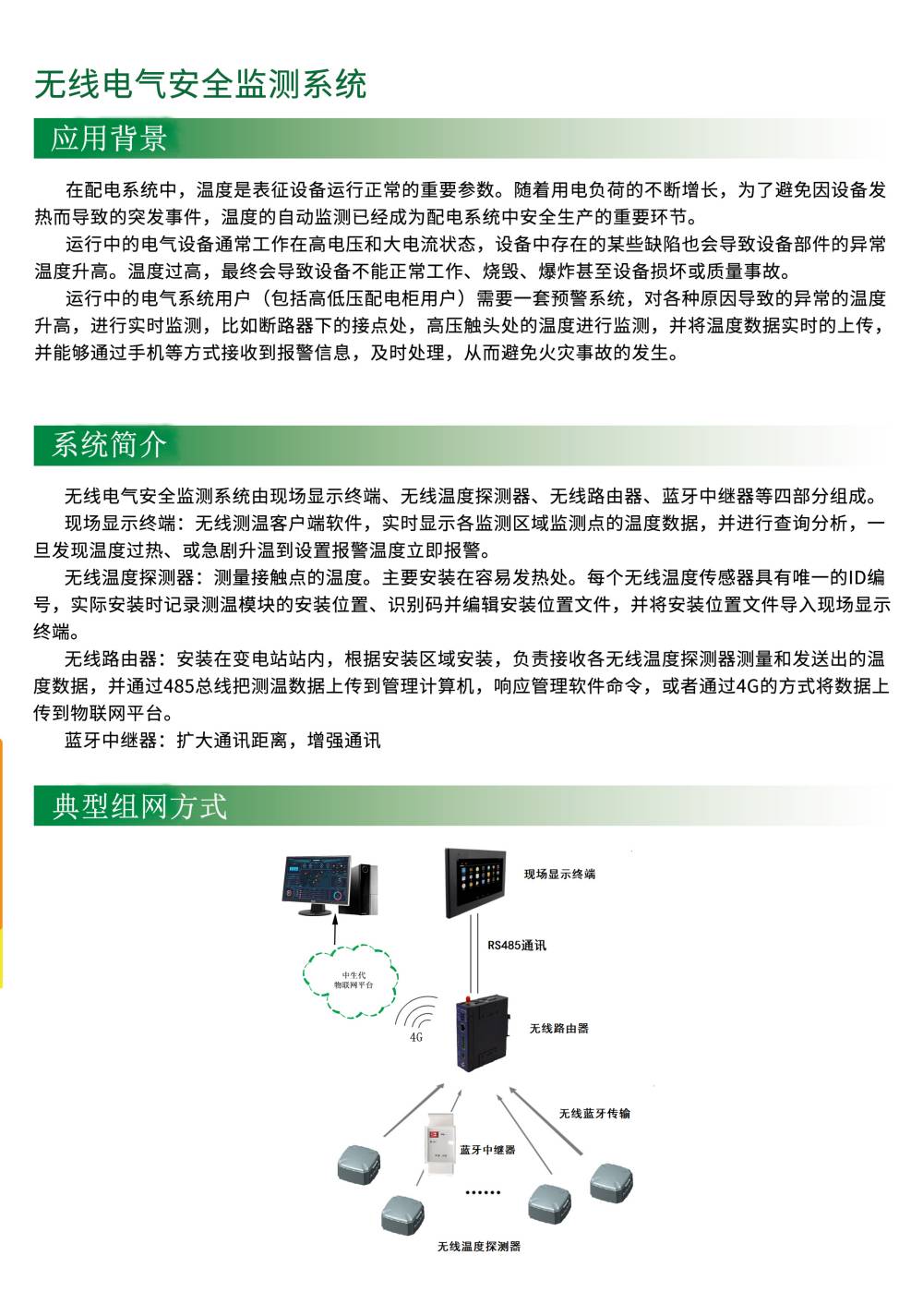 運行中的電氣系統用戶(包括高低壓配電柜用戶)需要一套預警系統,對各種原因導致的異常的溫度升高,進行實時監測,比如斷路器下的接點處,高壓觸頭處的溫度進行監測,并將溫度數據實時的上傳,并能夠通過手機等方式接收到報警信息,及時處理,從而避免火災事故的發生。